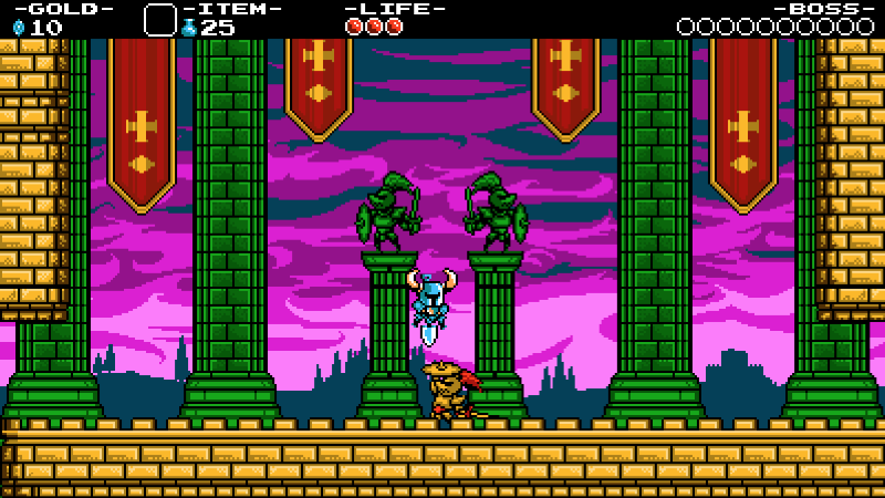 What it is: Shovel Knight is the first title from Yacht Club Games, a group largely led by former WayForward staff. The game heavily borrows from popular platforming titles such as Mega Man and DuckTales, and sprinkles in a little bit of Metroidvania style. The story revolves around our hero, Shovel Knight, adventuring to defeat the the Order of No Quarter and their leader, the Enchantress. The knight uses his trusty pointy shovel to attack enemies, dig up piles of treasure and even pogo along platforms like Scrooge McDuck.